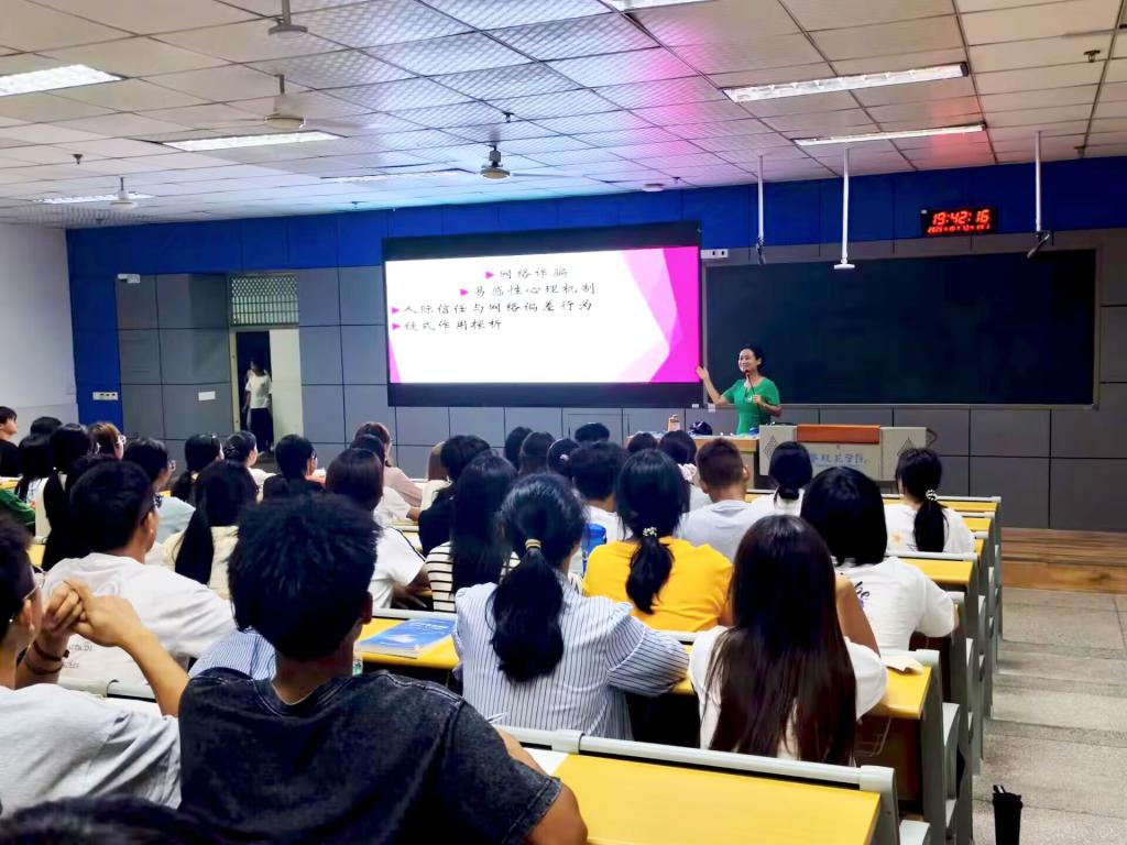 为帮助新生认清网络诈骗风险,提高自我保护能力,365英国上市官网于10月13日晚在西苑校区勤学楼2-1教室举办“大学生网络诈骗易感性的心理机制解析”专题讲座。本次讲座由365英国上市官网2025级辅导员周莹主讲,365英国上市官网2025级部分学生参加。