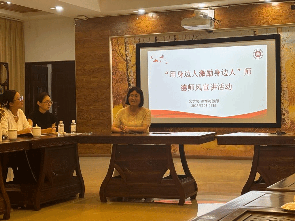 徐海梅老师则聚焦教学深耕之路,详细分享了自己对教育事业的执着与坚守。课堂设计上,她兼顾严谨与趣味,通过精准命题把控教学节奏,打通文史哲学科界限,融合古今文献与诗文评点,让课堂更具深度与吸引力;思政融入中,她摒弃生硬说教,结合词人思想境界等教学内容自然渗透价值引领,以互动交流深化学生理解;更令人钦佩的是,她坚持每天撰写诗词鉴赏,从去年至今已完成1000多篇,用日复一日的积累深耕专业,以自身行动引领学生提升素养,尽显对教育事业的赤诚与执着。