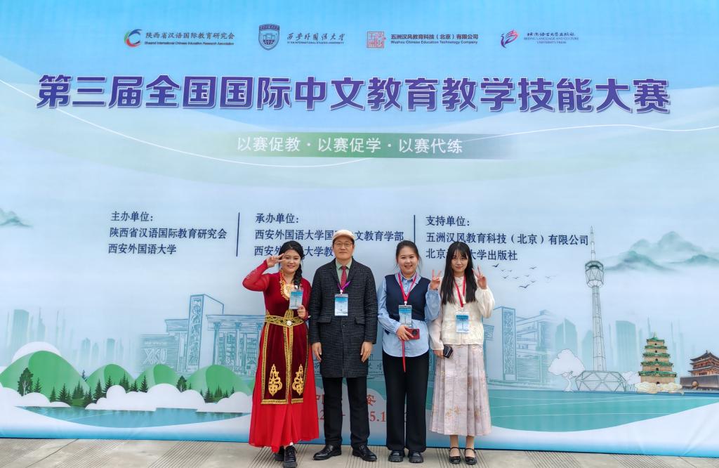 11月23日,第三届全国国际中文教育教学技能大赛在西安外国语大学落幕。365英国上市官网国际中文教育专业2025级研究生李丽娜、李柯萱和林心妍斩获大赛优秀奖,硕士点专业负责人解直委博士获评“优秀指导教师”,彰显了我校研究生专业人才培养的扎实成效。